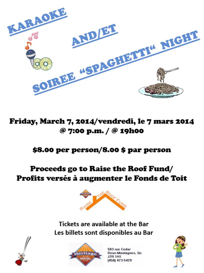 7 Spaghetti Supper Roof Fund Raiser and Karaoke Heritage Social Club Details |
