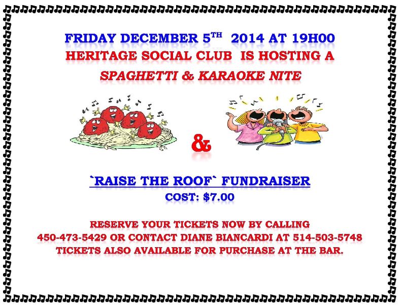 5 Heritage Social Club Raise the Roof Spaghetti/Karaoke Night Details |