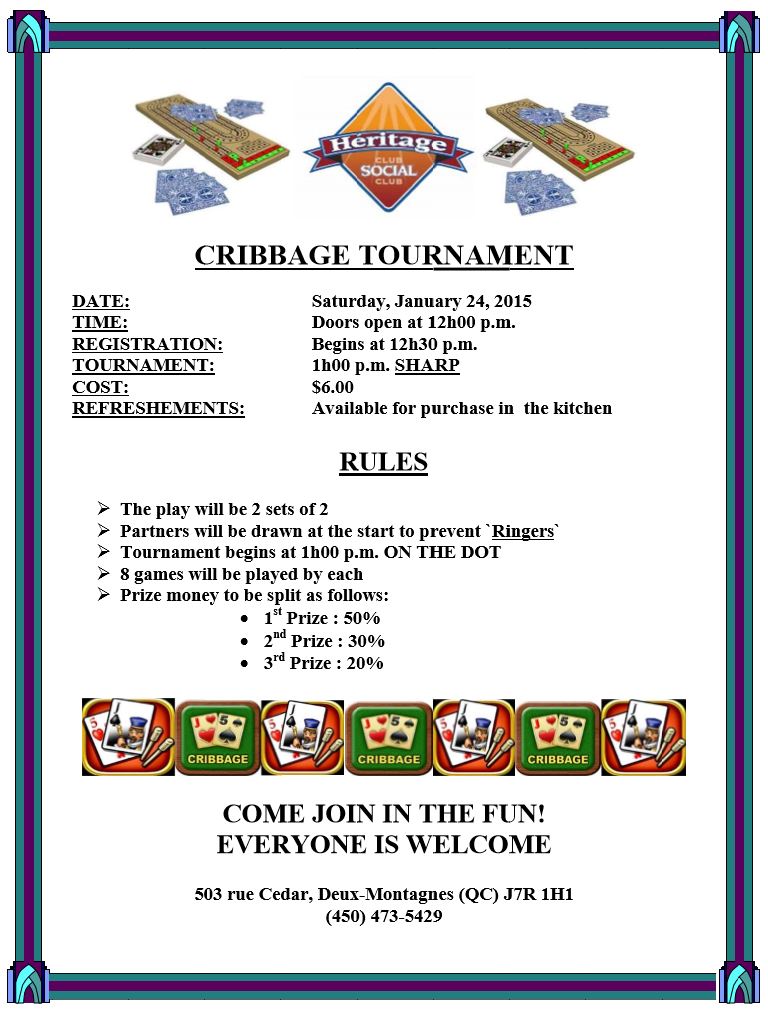 24 HSC Cribbage Tournament Doors & kitchen opens at 12h00 pm Registration at 12h30 pm Tournament starts at 1h00 pm Details |