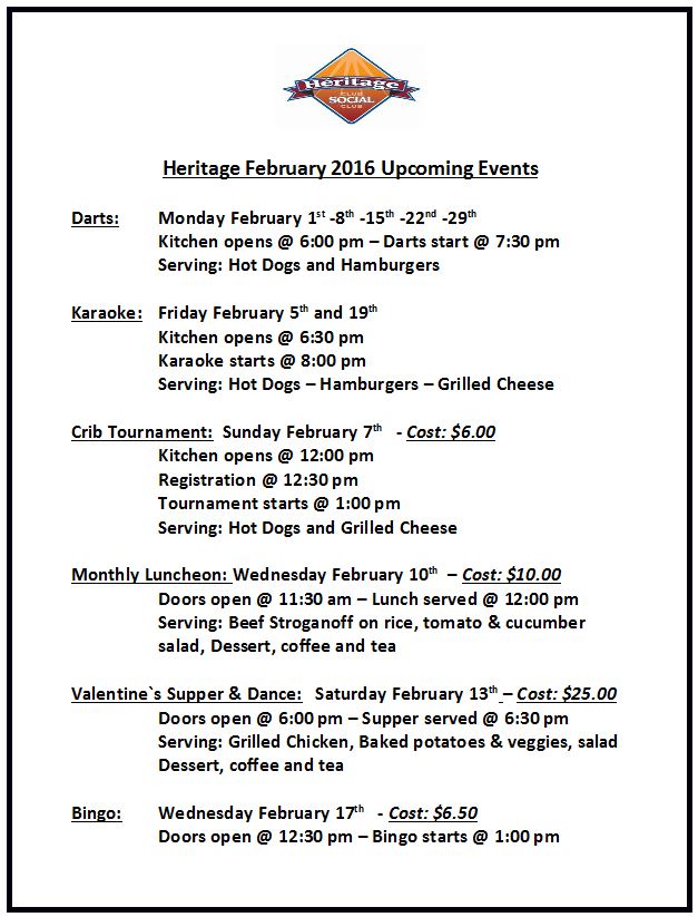 13 Heritage Social Club ♥Valentine Supper & Dance♥ Details |