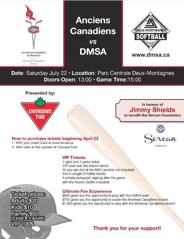 22 DMSA Vs. Anciens Canadiens de Montréal Softball Game Details |