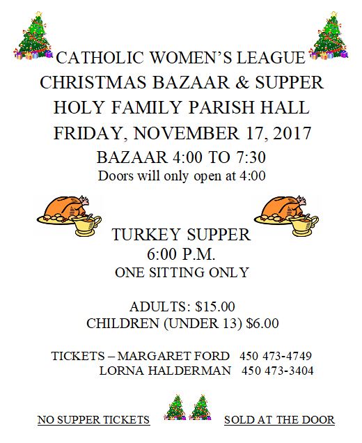 17 Catholic Women's League Christmas Bazaar and Supper Details |