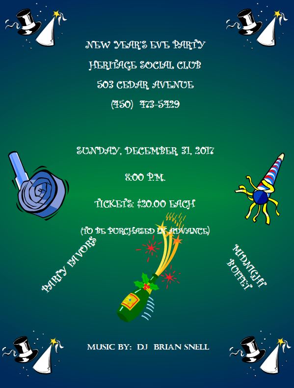 31 New Year's Eve Heritage Social Club New Year's Eve Party Details |