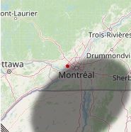 8th Solar Eclipse from Two-Mountains North America is getting ready for a great celestial show. If you are reading this, it is the last one in your lifetime unless you want to travel somewhere to see it. Deux-Montagnes is only a few kilometres away from the path of totality but it doesn't mean it won't be something special. The sun will be 99.8% covered here for a few seconds. It will be dark enough to see Venus lower in the sky at about the 5 o'clock position. The actually time of the eclipse is from around 2:25 to 4:35 with the peak at 3:27:27. Of course, if the skies are cloudy, all you will observe is about five minutes of nighttime and the rest will feel like twilight. If you want to experience totality you only need to make you way to Old Montreal where the sun will be entirely hidden for one minute and 25 seconds. If you were to go a little further south like Lacolle, for example, you would extend the darkness to almost 3½ minutes. The map on the right shows you just how close we are to being in the full shadow of the moon (red dot is Deux-Montagnes). If you want to see other places in Québec where the eclipse will be seen, check out the interactive map on this site. No matter what, the only time you can look directly at the eclipse without proper eye protection is during totality you might be able to peek at it at 99.8% but I wouldn't chance it for longer than a few seconds. The city was offering free glasses on Monday March 25 at 1pm at the library but they went fast. If you can't get a hold of glasses, the safest way to view any solar eclipse is with a easy DYI pinhole projector. This link has the instructions on how to make one. On Monday morning, March 25th at around 2:00am, the full moon was passing in the earth's penumbra. It's called a penumbral lunar eclipse. It wasn't much of a show as the moon simply got a little dimmer. It was just the moon getting ready for April 8th.
