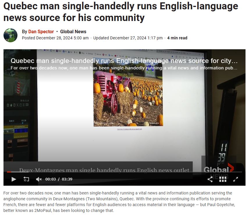 Online...but don't tell anyone Since Two-Mountains (or officially Deux-Montagnes) is not regarded as a bilingual city, as the threshold for this designation is 50% English, it can no longer provide their website or newsletters in English. I have to say that until Bill 96 was in force, the city did go out of their way to provide English services and documentation. Since June, the Quebec government told the cities that if they continued to pander to their English constituents that they would lose provincial funding for projects and could even be fined in addition. Some people call this blackmail. Of course, the city's hands were tied and they had to bow to the wishes of weasels in power. So for the 16% of the Anglos of Deux-Montagnes, the link to the city website (on the top of this page) will now actually filter the French only city site through Google Translate. Of course, there are a few translations that might not make sense but the AI around the translation has improved tremendously in the last few years. The results are sometimes funny but you should get the information you need if not a chuckle on how things turn out. Give it a try and let me know how it went. If you want to read my website in French, click here. It might take a few seconds to load because there is a lot to translate. I just ran across a CBC video on YouTube that shows the absurdity of the new language laws and the potential costs to the retailers when they have to comply to new rules by June 1, 2025. Again, this effort to 'save' the French language. It could cost millions that will end end costing us as consumers or having the chains just stop operations in Quebec. Click here to view the CBC video.