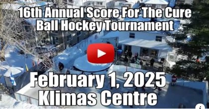 For the Cure Ball Hockey Tournament - Saturday February 3rd The 15th annual Score for the Cure Ball Hockey tournament will be played this year to raise funds for Cancer research. The action starts at 8:30am goes on all day with 7 teams vying for bragging rights in a double elimination round robin. The entry to the Klimas Recreation Centre is free and is located at 254 Regent Street in Two Mountains, Click here for the map. There will be food and beverages available most of the day for free. A donation is encouraged. There will also be multiple raffles for gift cards and grand prize, a pair of Habs tickets in the Desjardins section (food included) for the Habs vs Dallas Stars. This fundraiser is in association with the Dan Klimas Drive for the Cure which has raised well over 1.45 million dollars over the past 22 years. This year's tournament will take place at the Rosemère Fontainebleau Golf Club on Thursday, June 27th. Click here for a video of a last year's tournament.