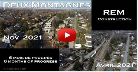 REM Construction Progress After One Year On December 31, 2020 the last commuter train pulled in to the Deux-Montagnes station. As weird as celebrating the entrance of the new year as it was in 2021, who knew how much weirder it would be celebrating it this year with Quebec's 10pm curfew. Anyway if you need a little reminiscing of the last run of the train, you can click here to watch the video. Exactly one year ago, the work started on the new REM line. It's at least a 3 year project and it will be a miracle if we see the REM running in Two-Mountains in the planned fall of 2024. The line from the old Val Royal/Bois Franc station to Two-Mountains will be the second to last leg to be in operation just before the link to the airport. The work on the line itself is causing quite a bit of disruption as the boulevard du lac crossing was closed for 7 months and Oka road will remain closed at the crossing until July 2022. The city itself is getting a major facelift as the government imposed densification applies to two perimeters around our 2 future stations. Having two stations in Two-Mountains is both a God send and a curse. It's great having two places to board the train however it makes two 1 kilometre radius zone around the stations that require a certain amount of people residing per hectare. The city is struggling with the zoning but it has opted to allow 'highrise' units only in certain areas of the city as to not completely alter the flavour of the town. With the increase of tele-commuting due to COVID one wonders if the REM is overkill. Many people will continue working from home at least on a part-time basis so studies of commuter traffic taken pre-COVID have surely been skewed somewhat. Regardless, the REM project was conceived on the vision of 50 years and didn't really take into consideration the impact on closing down our commuter line for at least 3 years.