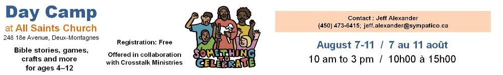 On Saturday April 22nd at 2pm, All Saints Church, at 248 18th Avenue, is holding its Spring Afternoon Tea. Tea is served in fine china along with finger sandwiches and a selection of pastries. The cost is $15. Reservations are required and can be obtained by contacting Kathleen at 450-472-3065 or by e-mail at pilkington@sympatico.ca.