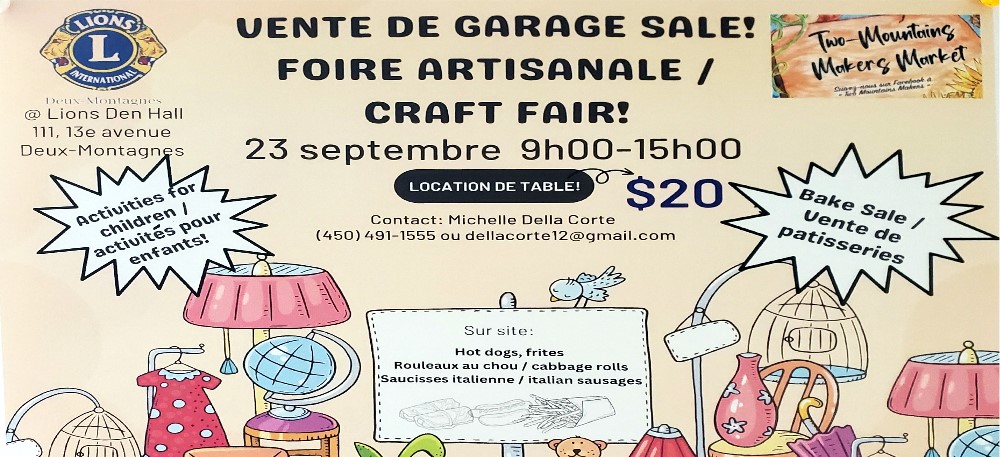 Fair The 19th annual book fair is happening this weekend (Saturday October 21 and Sunday October 22) at the Veteran's Hall, 141 Grand-Moulin. The hours at 8am to 4 pm. Paperback books are $1. Hard covers are $2 and children's book are 3 for $1. There are also collector books that are priced as marked. For persons with limited mobility or with small children in carriages, the doors open exclusively to those on Friday October 20th from 1pm to 4pm As always, profits from the sale will be used to serve our community. For more information you can call Nancy Ronik at 450 473-0298 or Martin Hensen at 450 473-1932 Construction Around the Legion If you've tried to drive down Grand-Moulin to Oka road recently, the road has been either blocked entirely or you are in for a bumpy ride near the Legion. There is a lot of construction happening in the area. A new centennial park has been in the works since 2021 but has been delayed due to COVID and other legal reasons. The work is now being done along with a lot of other changes in the area. Take a look at the video below for a before and now look at the progress. I will posted another video when the project is complete. For now, the work on the Legion parking lot has to be complete by the October 20th weekend as this is the weekend of the giant book fair held by the Lions Club. Stay tuned for that announcement.
