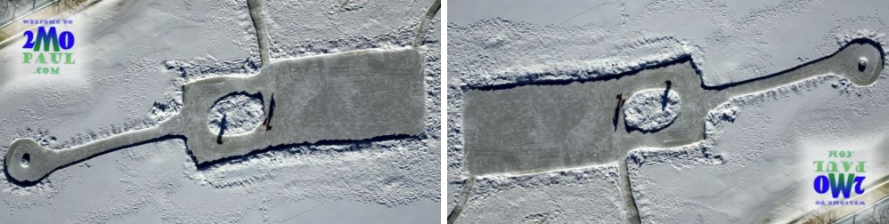 The 13th Annual SFTC Ball Hockey Tournament was held on Saturday, January 28th, at the Klimas Recreation Center. It's main objective is to raise money for Cancer research at the MUHC. At the end of the day, $4,800 was raised by the 6 team entry fee, donations for food and beverages and a raffle. Once the the amount was announced, a citizen rounded up the amount to $5,000. In the end, one team got the bragging rights of being champions, but the real winner was Cancer research. As Dan Klimas, originator of the Drive for the Cure Golf Tournament and its offshoot the Score for the Cure, puts it: Once again it shows how the Two Mountains community comes together to support all causes, groups or organizations. The spirit and commitment of our citizens and community both from near and far, our roots and values are unique to Two Mountains, this set of uniqueness has made the result of the tournament a secondary thought and the true winner of the day was our community and more importantly: Research into cancer wins the day. A video of the event can be seen by clicking the image on the right. For pictures, you can use this link. Thanks to all participants, spectators and volunteers. Optical Illusion on my Front Page Many people have told me about the picture of the skating rink on the lake on my front page and how it looks like it's sticking out of the snow. It a very common optical illusion that your brain is used to having things lit from above. If you look below, the left side picture looks strange only because the sun is shining from the bottom. The one of the right is actually upside down, but the sun now shines from the top.
