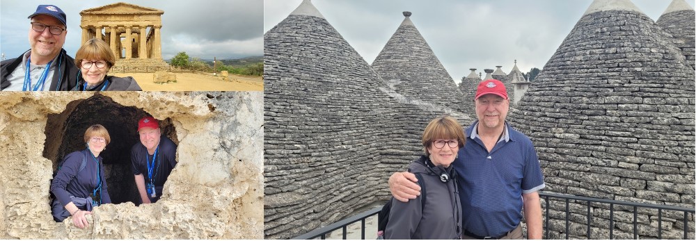 The picture on the top left is in front of the Temple of Concordia in the Valley of the