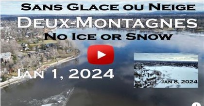 Archive 2023 Last updated on: February 18, 2025 A Very Mild Year End In my recollection, I don't remember a New Year's Day without the river and the lake without a cover of ice. Even during the green Christmas of 1980, it was cold enough that the ice had formed. Ice was partially covering the lake last week but it's all gone now. The ice fishing season will be very short this year if it ever gets going. There is absolutely no snow for the 'Skidoo' trails even in the northern Laurentians. Take a look at the video below. It shows the landscape around the future Grand-Moulin REM station and what it should look like in winter. The REM is due to start in late 2024 if all goes well and based of the progress that is seen here, fingers crossed, it could be a reality. The video on the left shows that it doesn't take long for Mother Nature to change the landscape. The first part was filmed on New year's day while the second part was recorded on January 8th after the first snowfall of 2024.